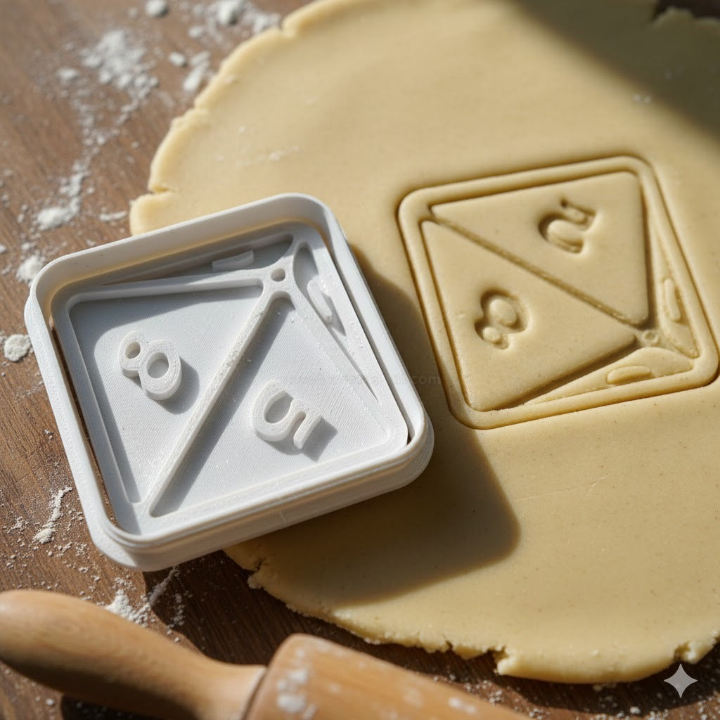 Emporte-pièce en forme de dé à 8 faces (D8) parfait pour créer des biscuits originaux sur le thème des jeux de rôle et des jeux de société.