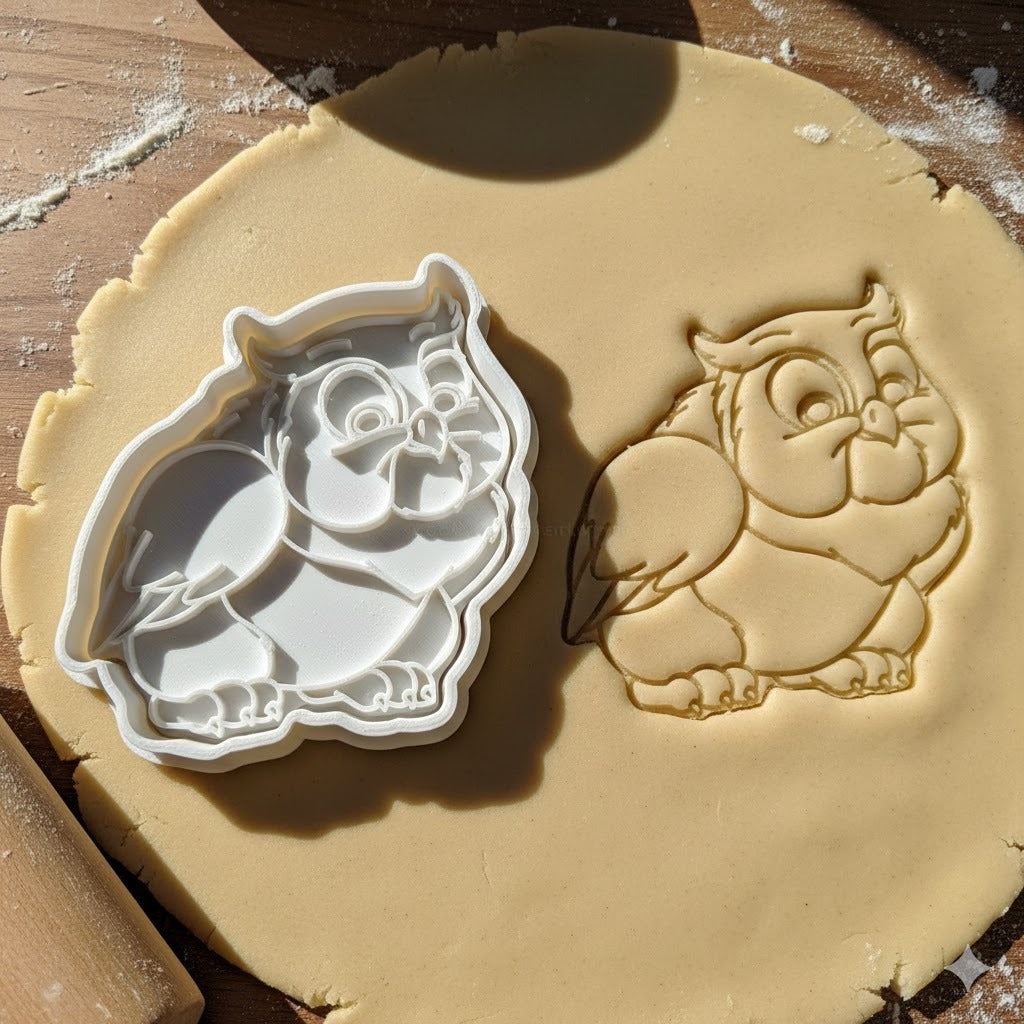 Parfait pour créer des biscuits originaux sur le thème de la forêt et des personnages Disney. Design détaillé avec les traits caractéristiques du hibou : grands yeux expressifs, plumes et posture adorable.