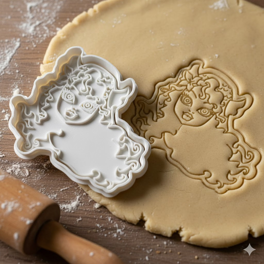 Cet emporte-pièce détaillé capture tous les traits caractéristiques du personnage avec ses cheveux bouclés et son style unique.