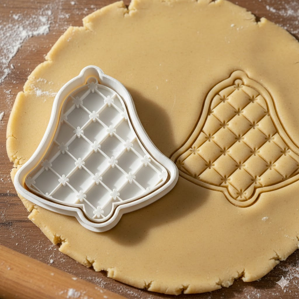 Magnifique emporte-pièce en forme de cloche avec un élégant motif matelassé capitonné. Parfait pour créer des biscuits décoratifs raffinés pour les fêtes de fin d'année, Noël ou toute occasion festive.