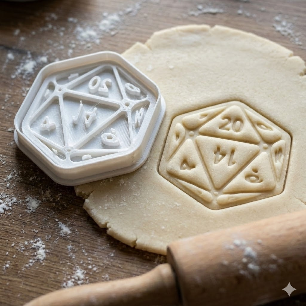 Emporte-pièce en forme de dé à 20 faces (D20) parfait pour les amateurs de jeux de rôle et de fantasy. Créez des biscuits originaux pour vos soirées gaming, anniversaires ou événements thématiques.