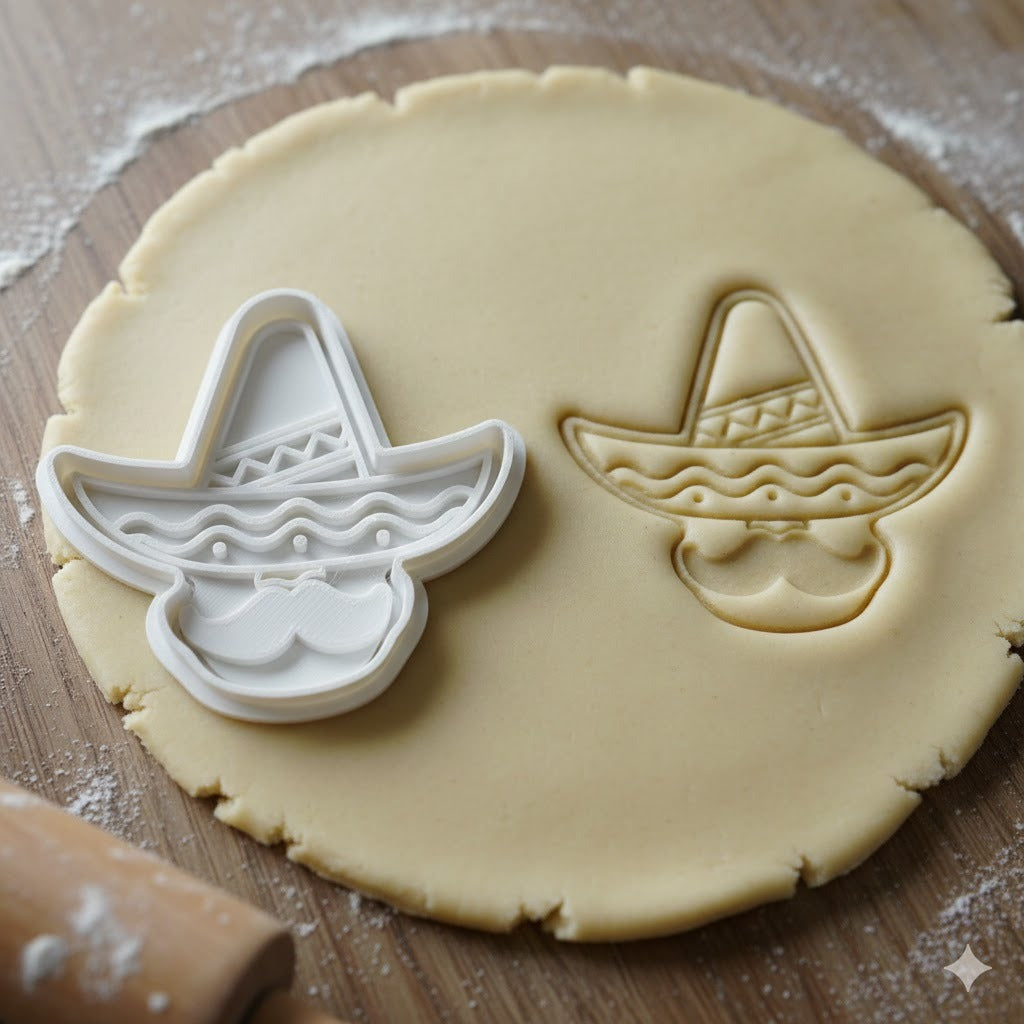 Emporte-pièce en forme de sombrero mariachi avec moustache, parfait pour créer des biscuits festifs et originaux. Idéal pour les fêtes à thème mexicain, les anniversaires ou simplement pour ajouter une touche de fun à vos pâtisseries.