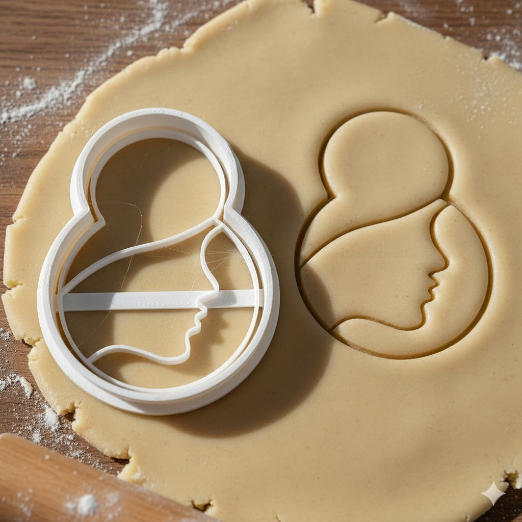 Emporte-pièce au design touchant représentant une silhouette de maman tenant tendrement son bébé dans ses bras. Parfait pour célébrer la fête des mères, une naissance ou simplement pour créer des biscuits remplis d'amour.