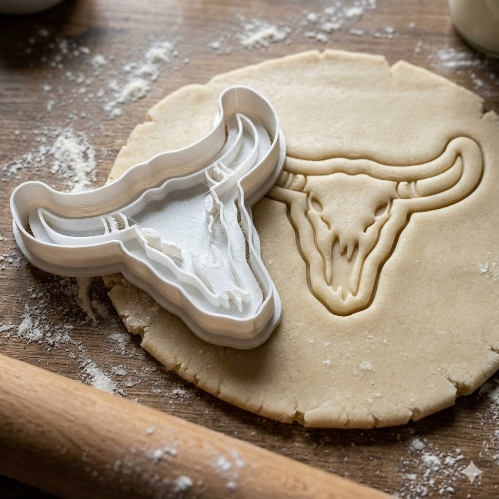 Emporte-pièce en forme de tête de taureau western avec cornes, parfait pour créer des biscuits originaux sur le thème du Far West. Idéal pour les fêtes à thème, anniversaires ou simplement pour ajouter une touche western à vos créations culinaires.