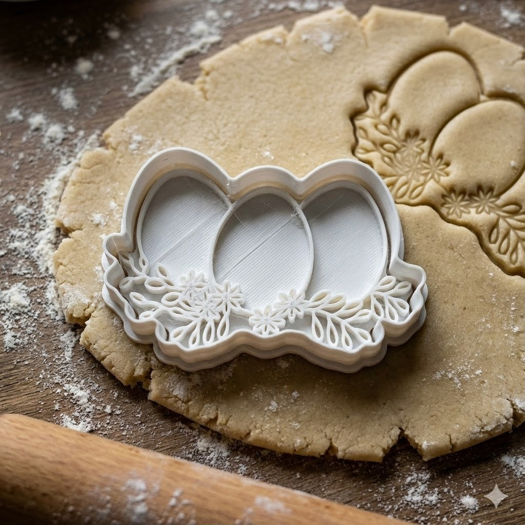 Cet emporte-pièce œufs de Pâques avec fleurs vous permet de créer des biscuits élégants et raffinés pour vos célébrations pascales. Le design présente trois œufs ornés d'un magnifique motif floral en relief, parfait pour impressionner vos invités et ravir les enfants.