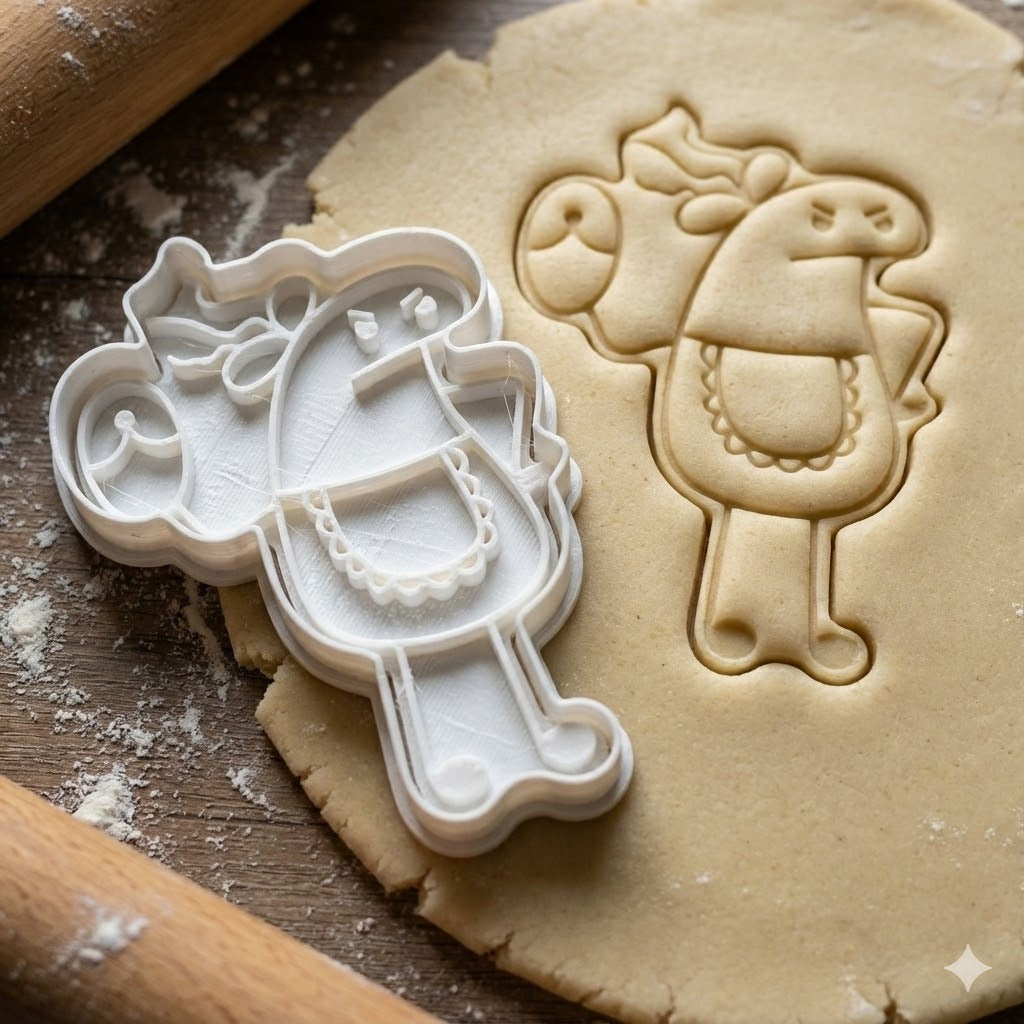 Adorable emporte-pièce représentant le célèbre personnage Flork en version Fête des Mères, avec son look kawaii et son nœud caractéristique.