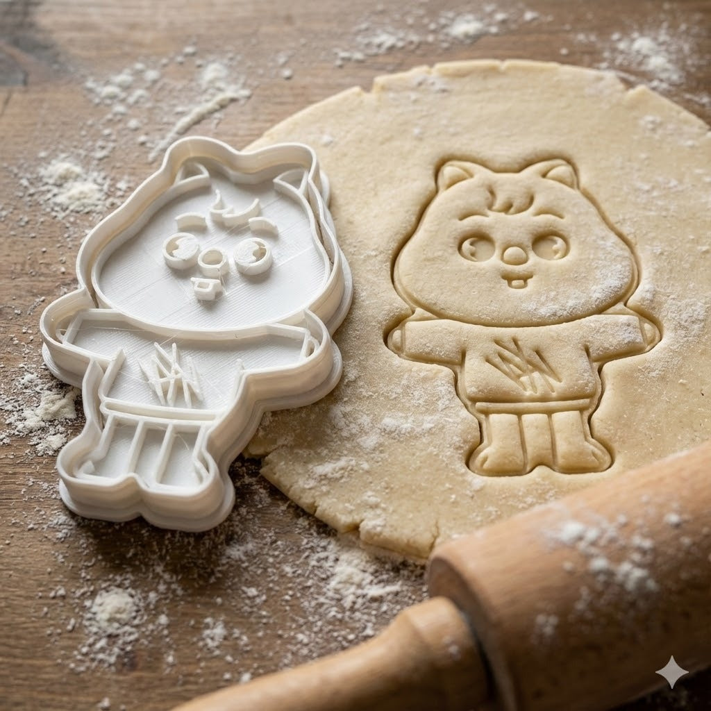 Emporte-pièce en forme de Han Quokka, le personnage adorable de SKZOO. Parfait pour créer des biscuits originaux et amusants avec ce design de quokka mignon portant une jupe. Idéal pour les fans de K-pop et pour réaliser des créations culinaires uniques.