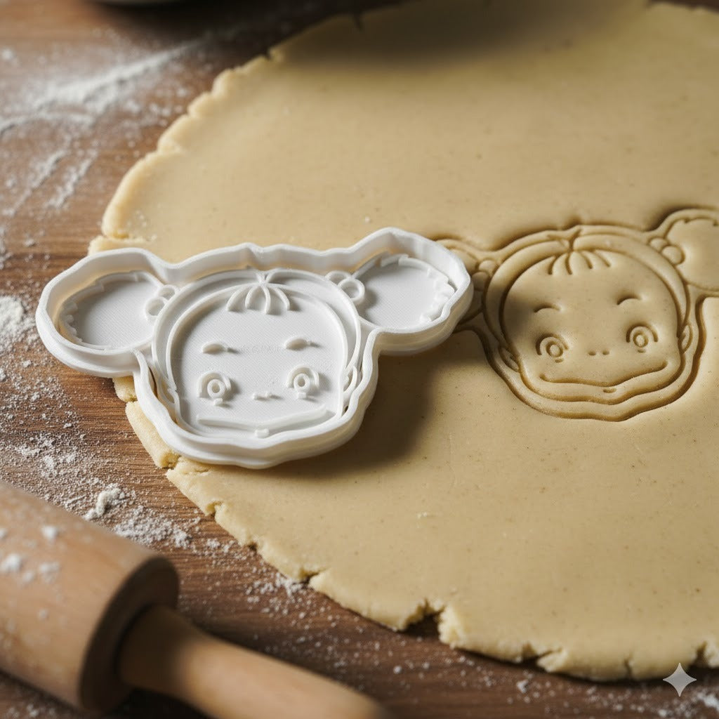 Parfait pour créer des biscuits kawaii qui raviront les fans de Miyazaki et les amateurs de pâtisserie créative. Ce design capture l'expression joyeuse et attachante de Mei avec ses couettes caractéristiques.