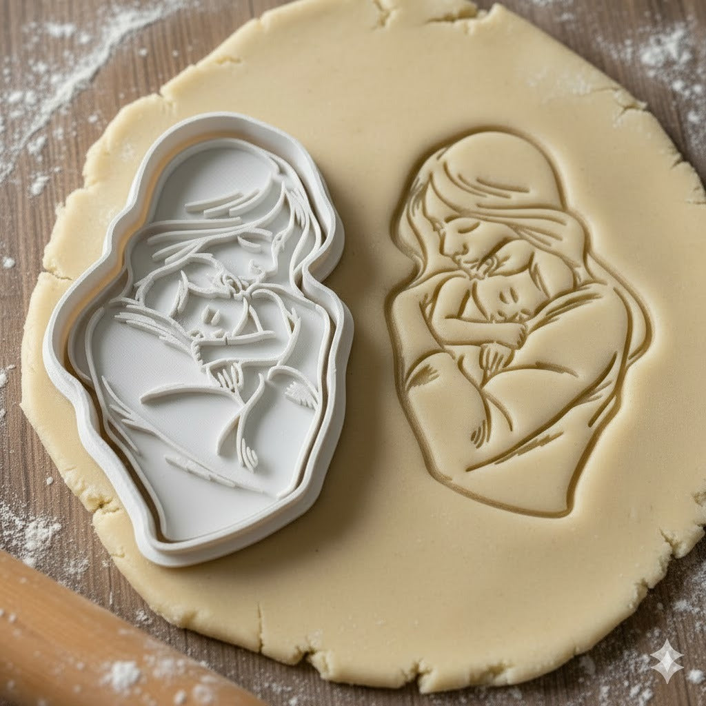 Magnifique emporte-pièce représentant une mère tenant tendrement son enfant dans ses bras. Ce design détaillé et émouvant est parfait pour créer des biscuits personnalisés pour la fête des mères, les baby showers, ou toute occasion célébrant l'amour maternel.