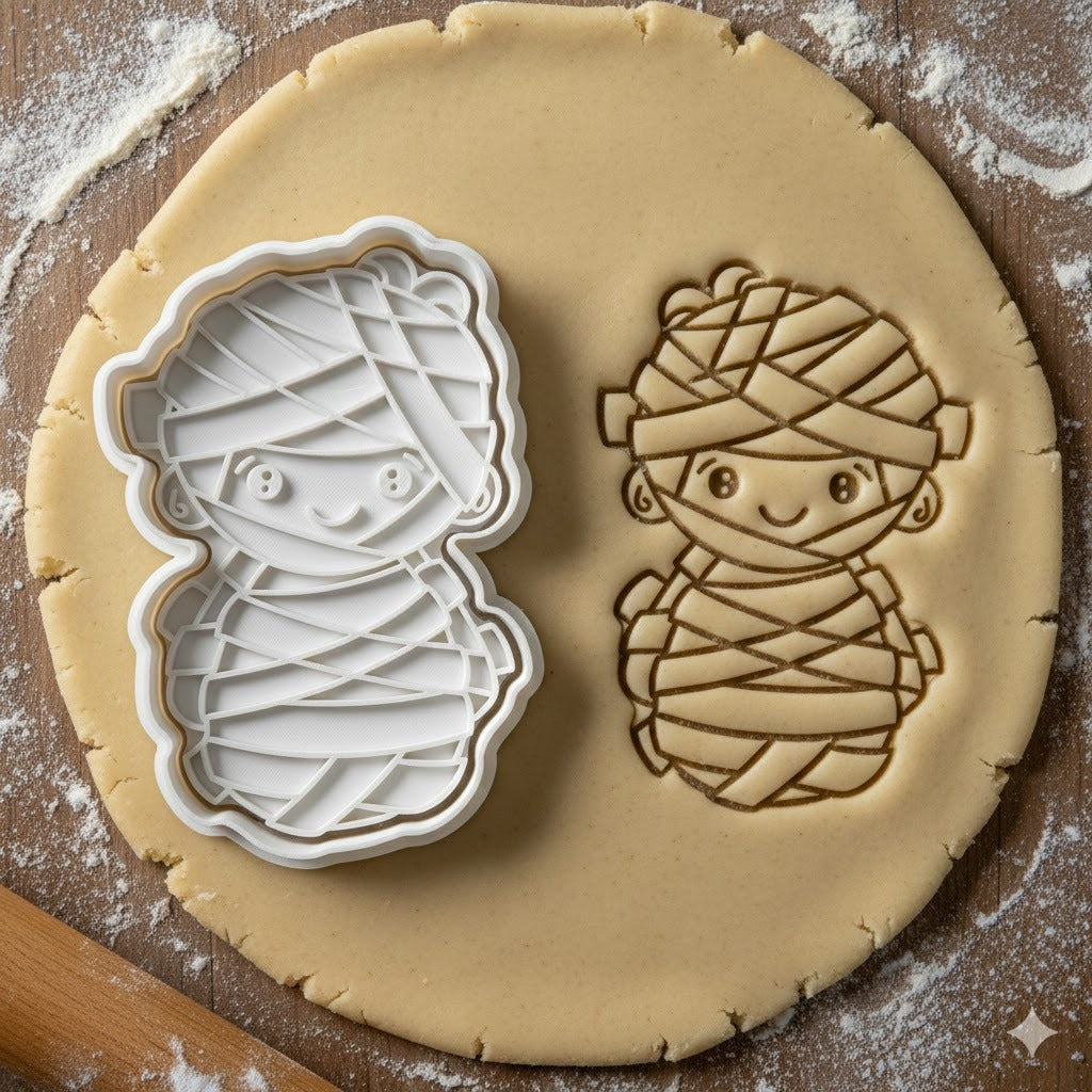 Adorable emporte-pièce en forme de momie pour créer des biscuits amusants et originaux. Parfait pour Halloween ou toute occasion festive.