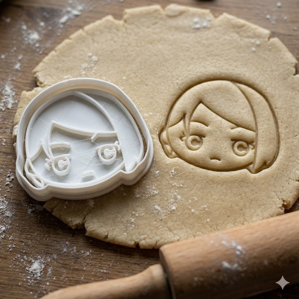 Emporte-pièce représentant Nobara Kugisaki, l'exorciste déterminée de Jujutsu Kaisen. Ce design kawaii capture parfaitement son expression caractéristique avec ses grands yeux et sa coupe au carré emblématique.