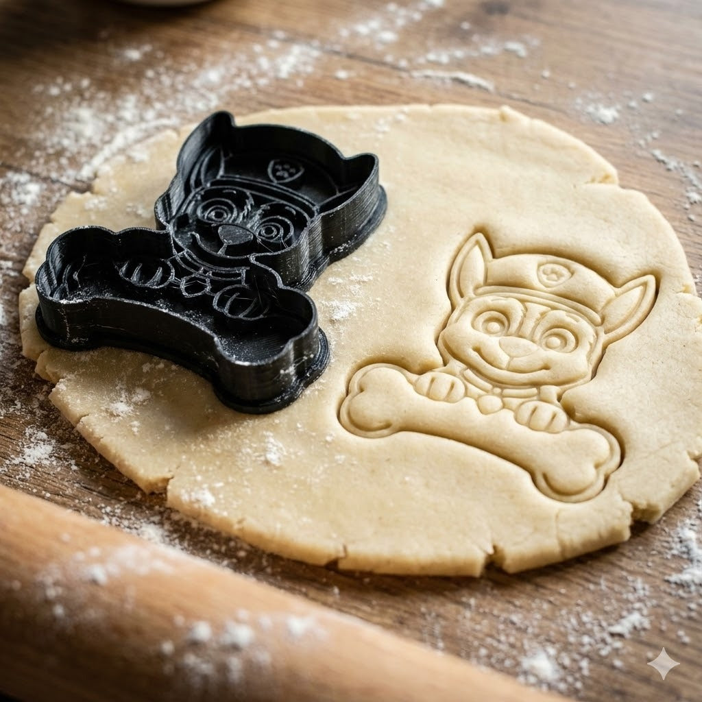Adorable emporte-pièce représentant un personnage de Pat' Patrouille tenant un os. Parfait pour créer des biscuits amusants qui raviront les enfants !