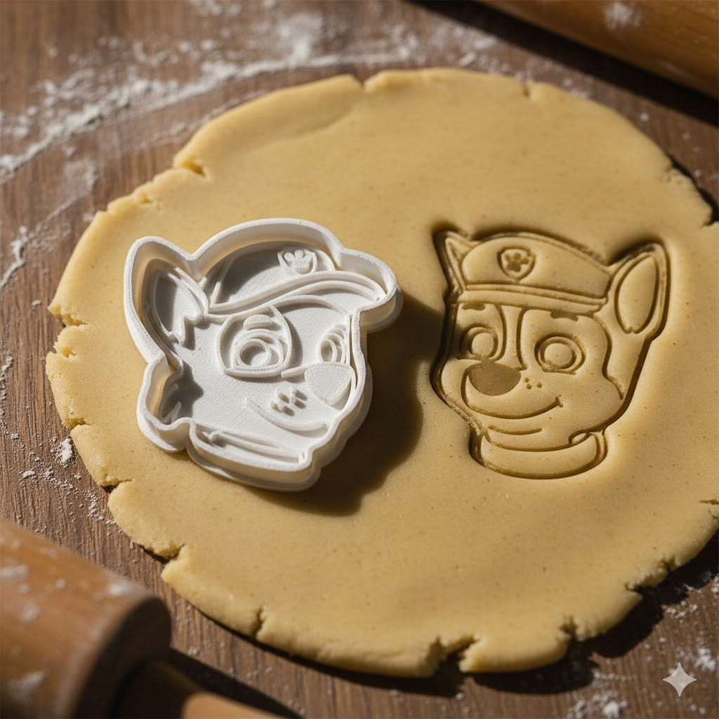 Emporte-pièce représentant Chase, le célèbre chiot policier de la Pat' Patrouille. Parfait pour créer des biscuits amusants qui raviront les enfants fans de cette série animée populaire.