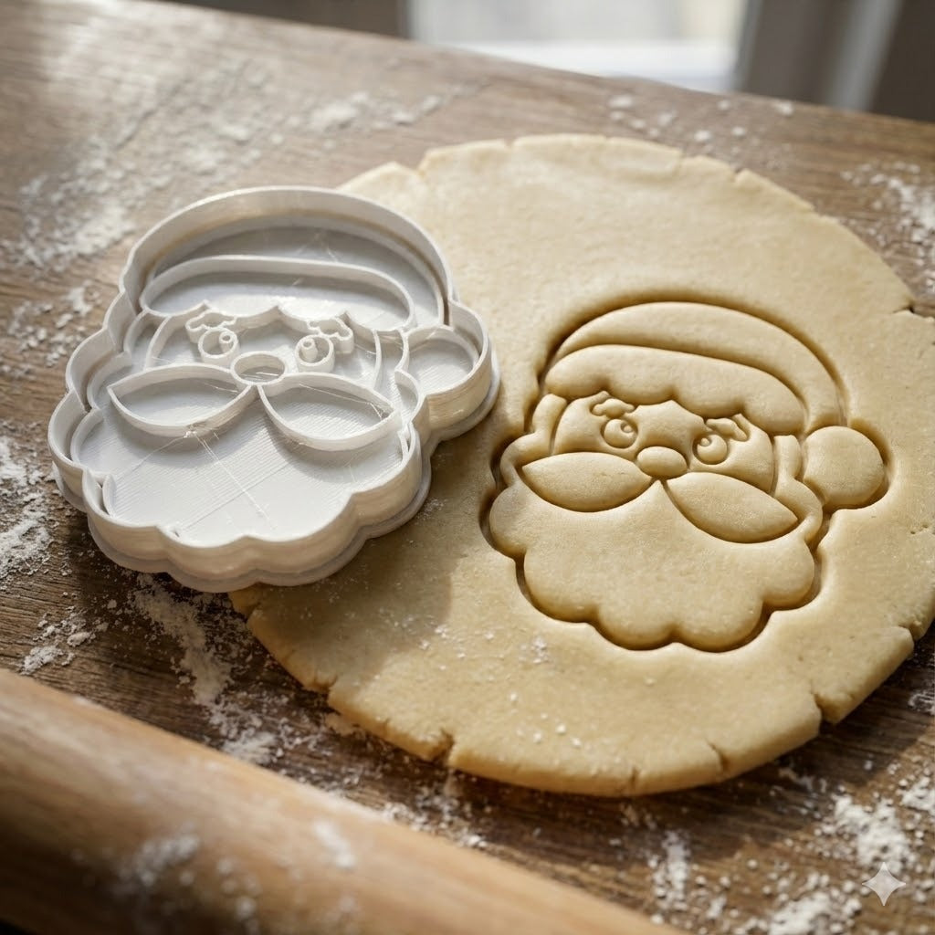 Emporte-pièce Père Noël au design adorable, parfait pour créer de délicieux biscuits festifs. Ce modèle présente un Père Noël souriant avec sa barbe caractéristique et son bonnet, idéal pour vos créations de Noël.