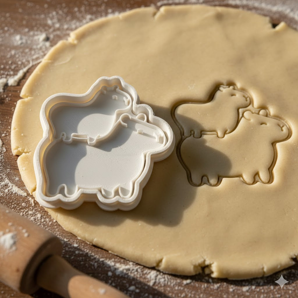 Adorable emporte-pièce en forme de tour de capybaras empilés, parfait pour créer des biscuits kawaii et originaux. Ce design mignon représente plusieurs capybaras superposés dans un style cartoon attachant.