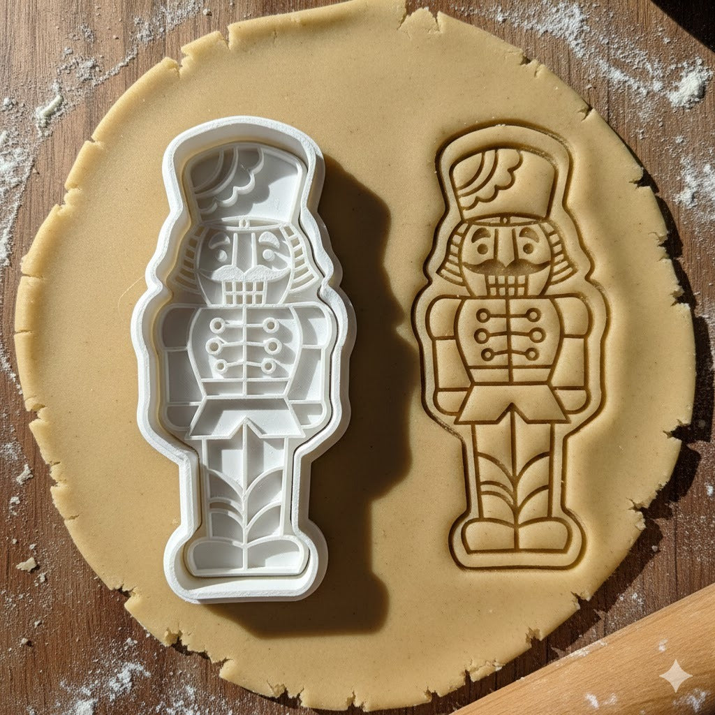 Emporte-pièce en forme de casse-noisette, parfait pour créer de délicieux biscuits de Noël. Ce design détaillé capture tous les éléments emblématiques du casse-noisette traditionnel : son chapeau à plumes, son uniforme militaire et ses bottes caractéristiques.