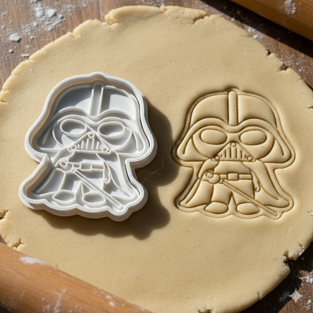 Adorable emporte-pièce en forme de guerrier galactique au style kawaii, parfait pour créer des biscuits originaux et amusants.