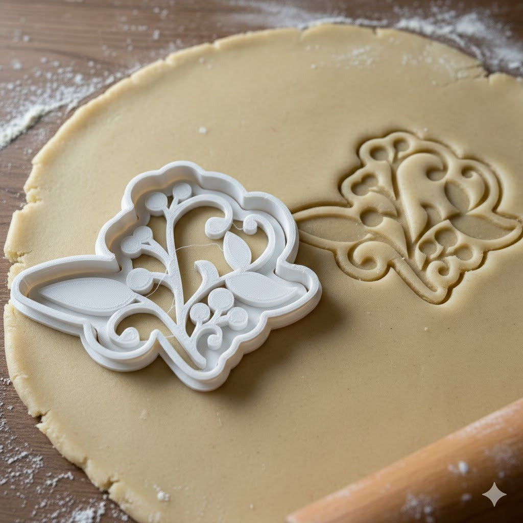 Emporte-pièce en forme de feuille avec motif décoratif inspiré de l'univers du jeu vidéo. Design détaillé avec des volutes et courbes élégantes pour créer des biscuits originaux.