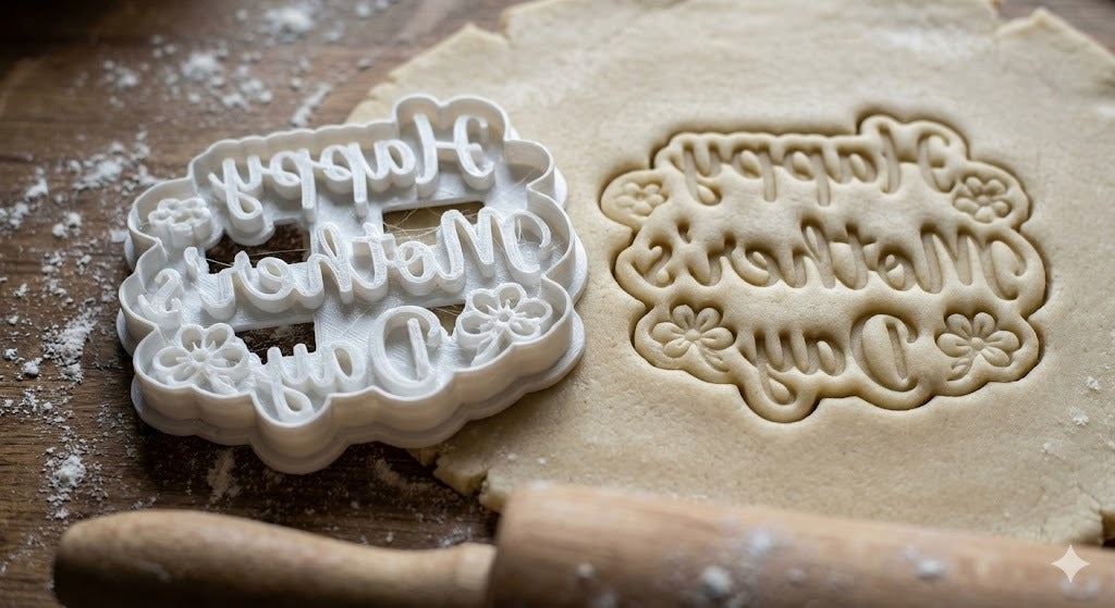Emporte-pièce décoratif avec le message "Happy Mother's Day" orné de fleurs délicates. Parfait pour créer des biscuits personnalisés pour la fête des mères.